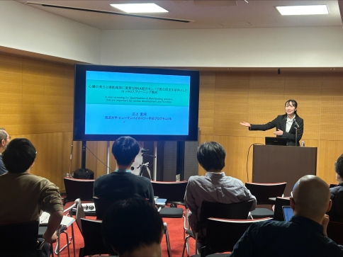 【セミナー開催】筑波大学生命科学動物資源センターの水野聖哉 教授、筑波大学人間総合科学研究群 の三上夏輝大学院生(D5)によるセミナーを開催しました。 演題 : 高効率遺伝子導入マウス作製法を利用した迅速な生体内遺伝子機能解析法の確立(水野教授) 心臓の発生と機能維持に重要なRNA結合タンパク質の同定を目的としたin vivo スクリーニング解析(三上さん)